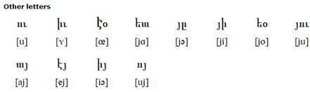 There are a few minor differences in the pronunciation of the letters between the two standard literary forms of Armenian: Western and Eastern.